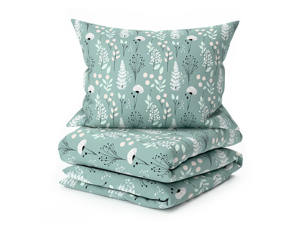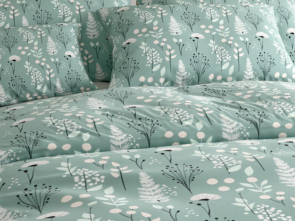 Lenjerie de pat din bumbac WILD FLOWERS mentol hoteliera cu buzunar