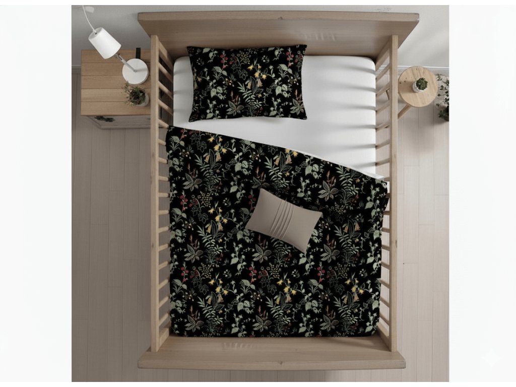 Lenjerie de pat pentru patut din bumbac Renforce FLORWELLA negru