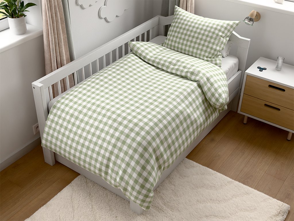 Lenjerie de pat din crep pentru patut Renforce GRENTIS verde