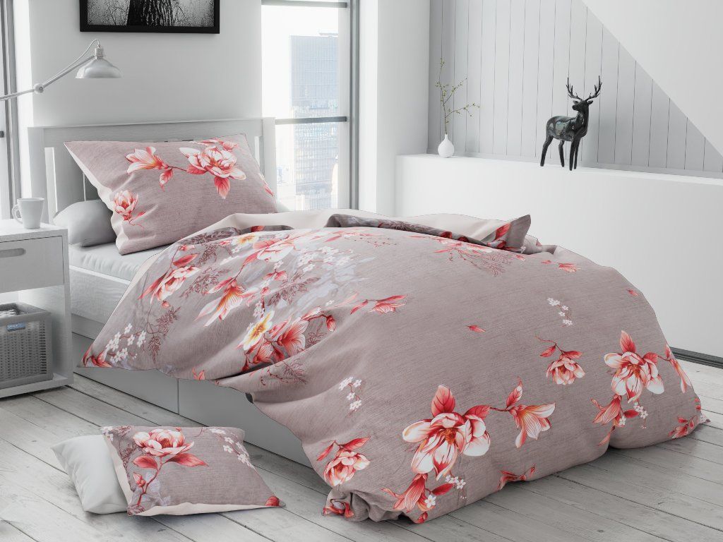 Lenjerie de pat din bumbac flanelat Culoare Gri, CHERRY + husa de perna 40x50 cm gratuit