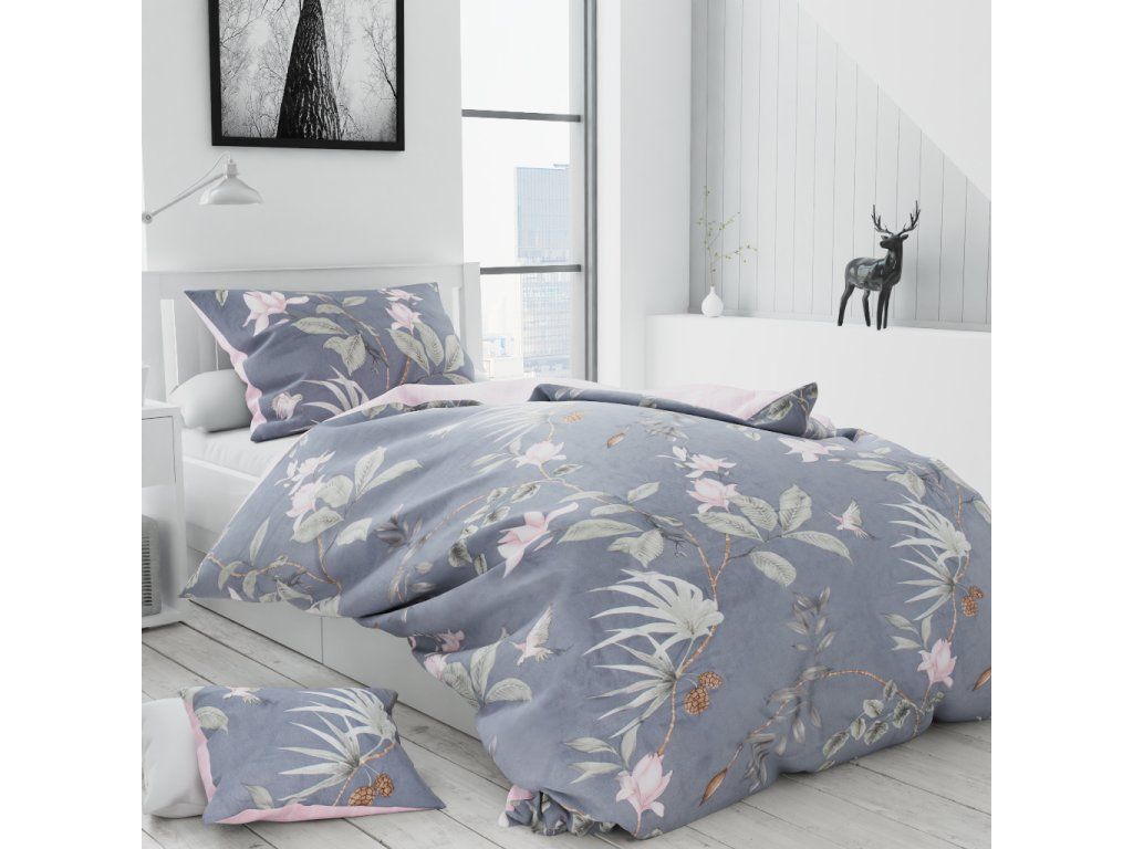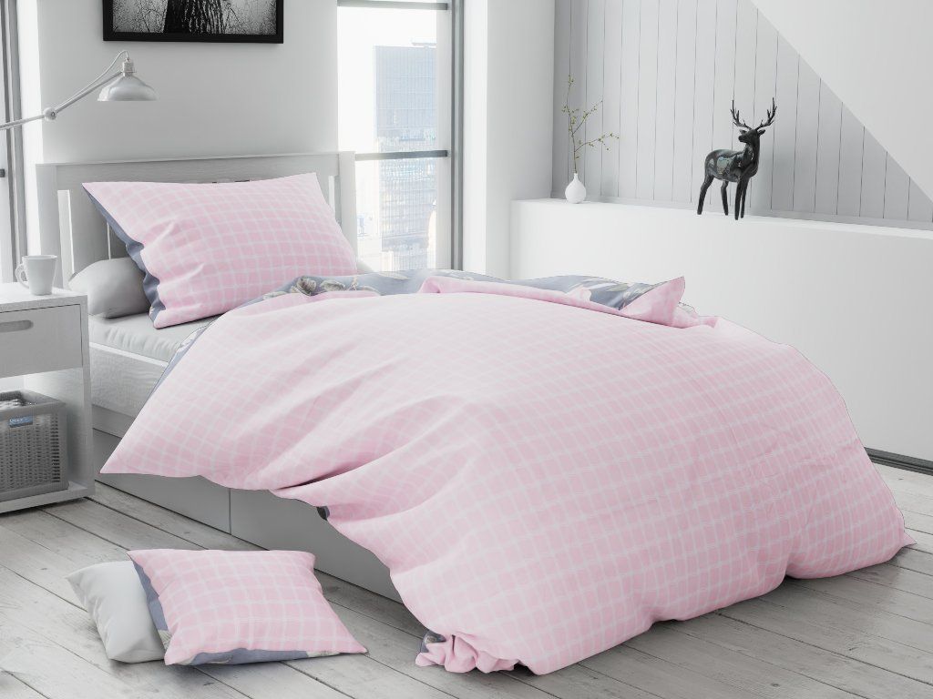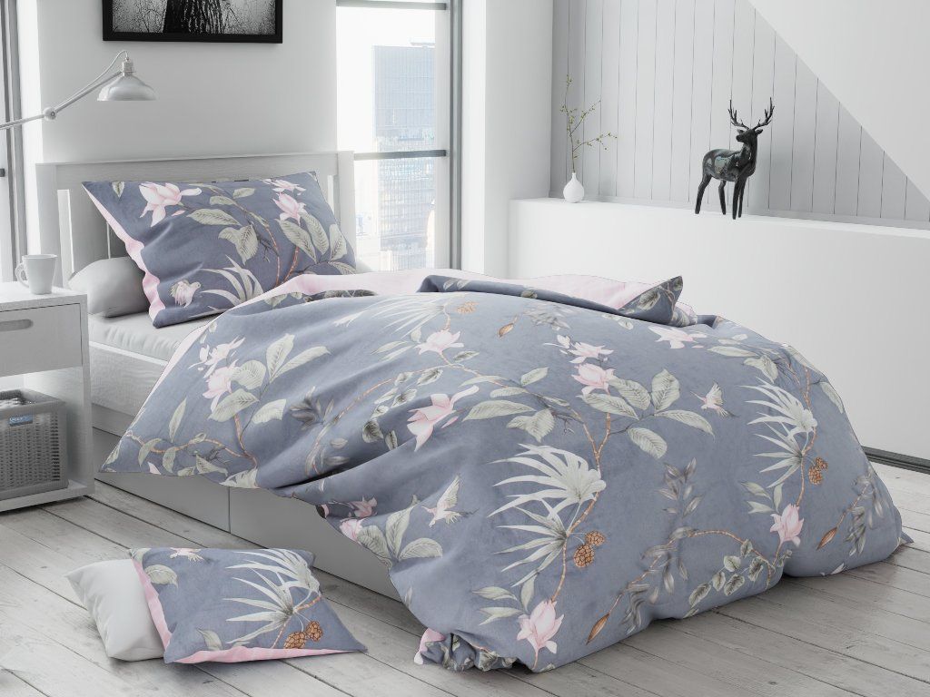 Lenjerie de pat din bumbac flanelat Culoare Gri, PIN + husa de perna 40x50 cm gratuit