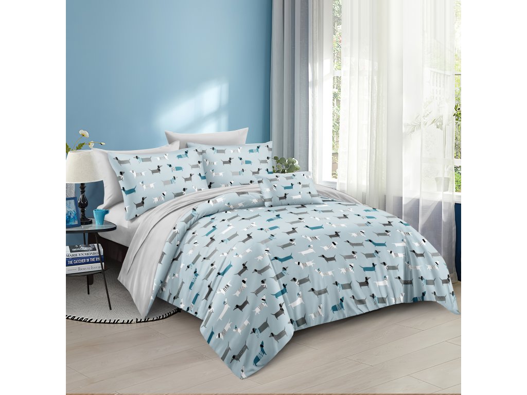 Lenjeria de pat din microfibră de calitate este foarte populară pentru textura sa moale, absorbția ridicată și respirabilitate. Stilul modern cu motiv animal este garantat pentru a atrage atenția. De asemenea, vă veți îndrăgosti de fundalul albastru în combinație cu detalii colorate, designul original și țesătura moale a lenjeriei de pat.