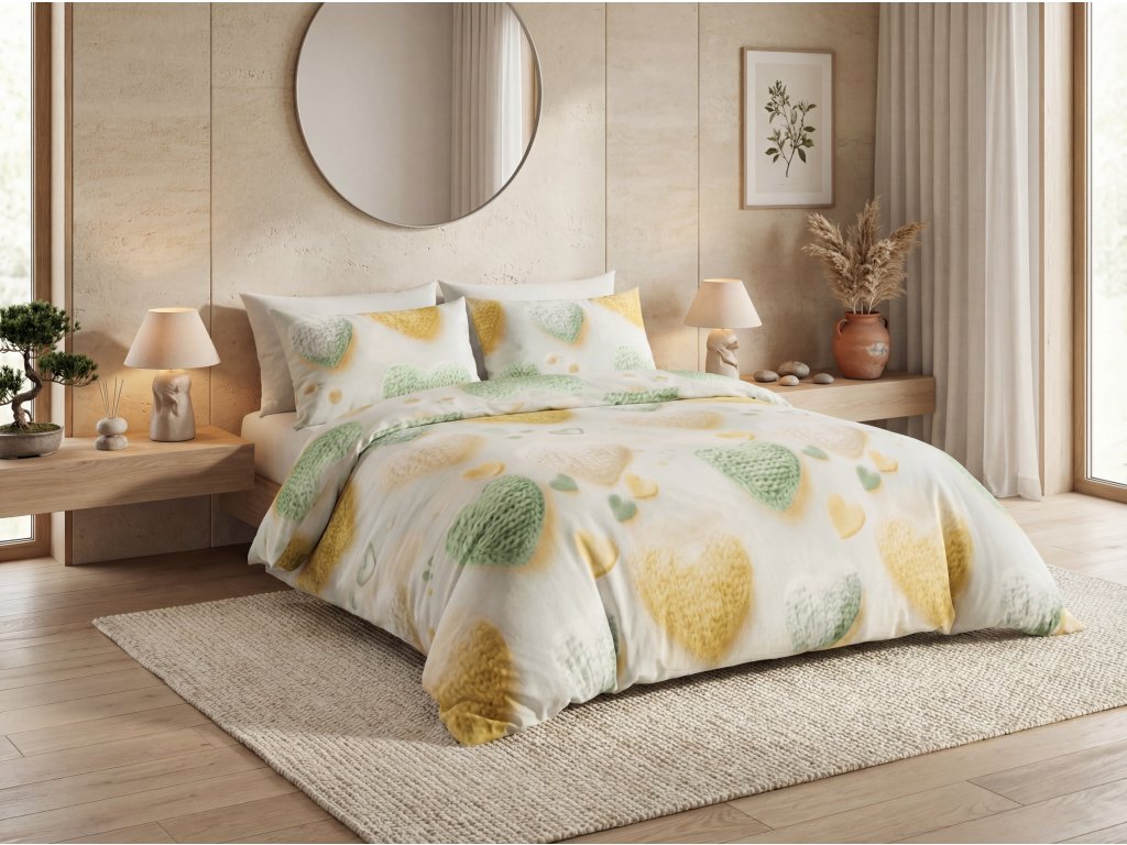 Lenjeria de pat din microfibra este o alegere practică pentru utilizarea zilnică datorită ușurinței sale, suprafeței fine și întreținerii ușoare. Materialul își păstrează forma, se usucă rapid și nu se șifonează, astfel încât își păstrează aspectul îngrijit chiar și fără călcare. Combinația de culori proaspete și deschise aduce ușurință și o atmosferă plăcută în dormitor pentru odihnă liniștită.