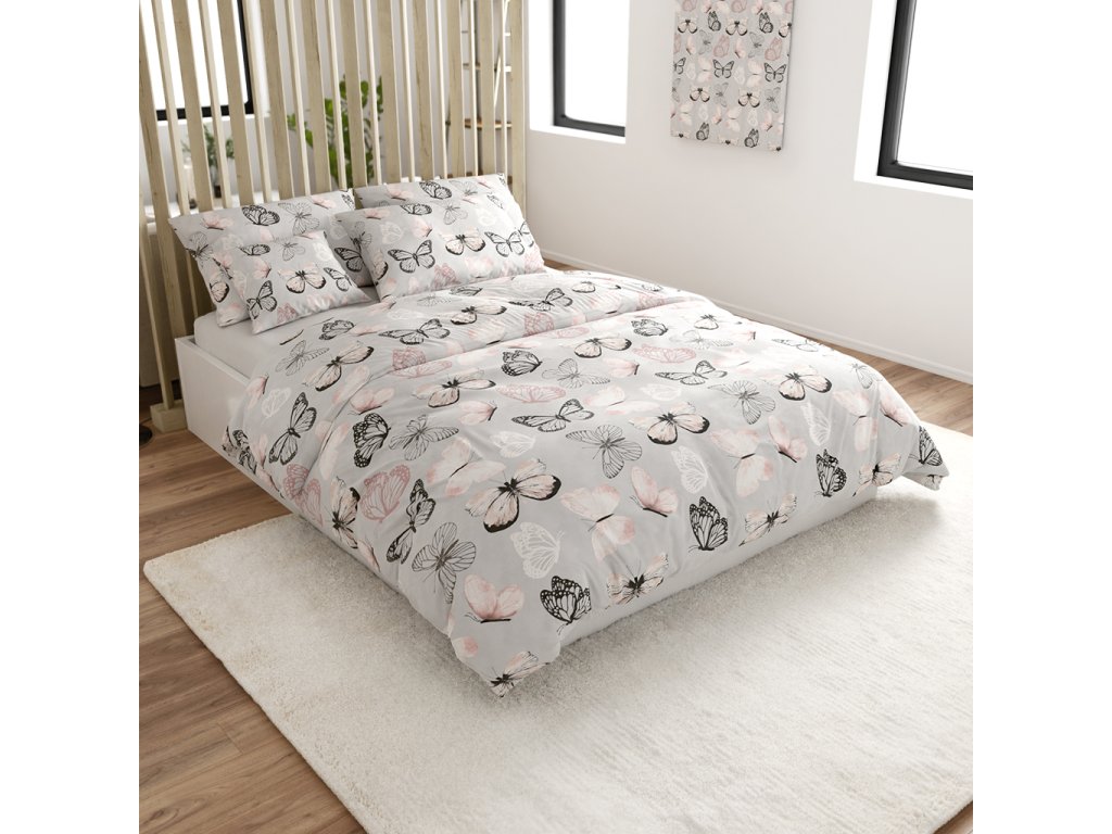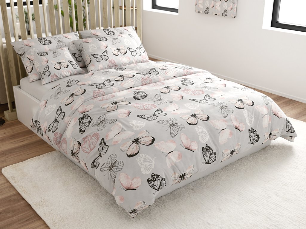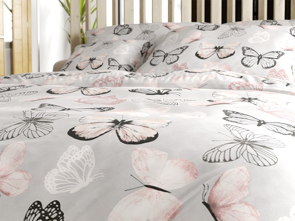 Lenjerie de pat din microfibra MY BUTTERFLY svetle sede
