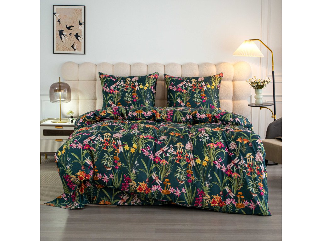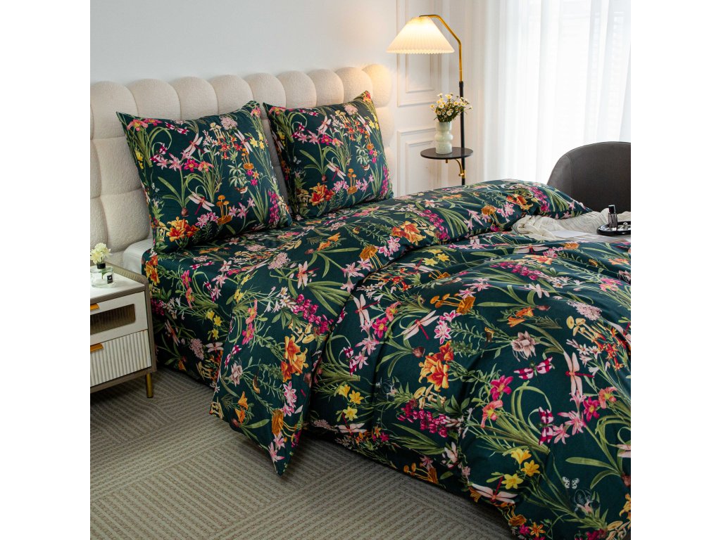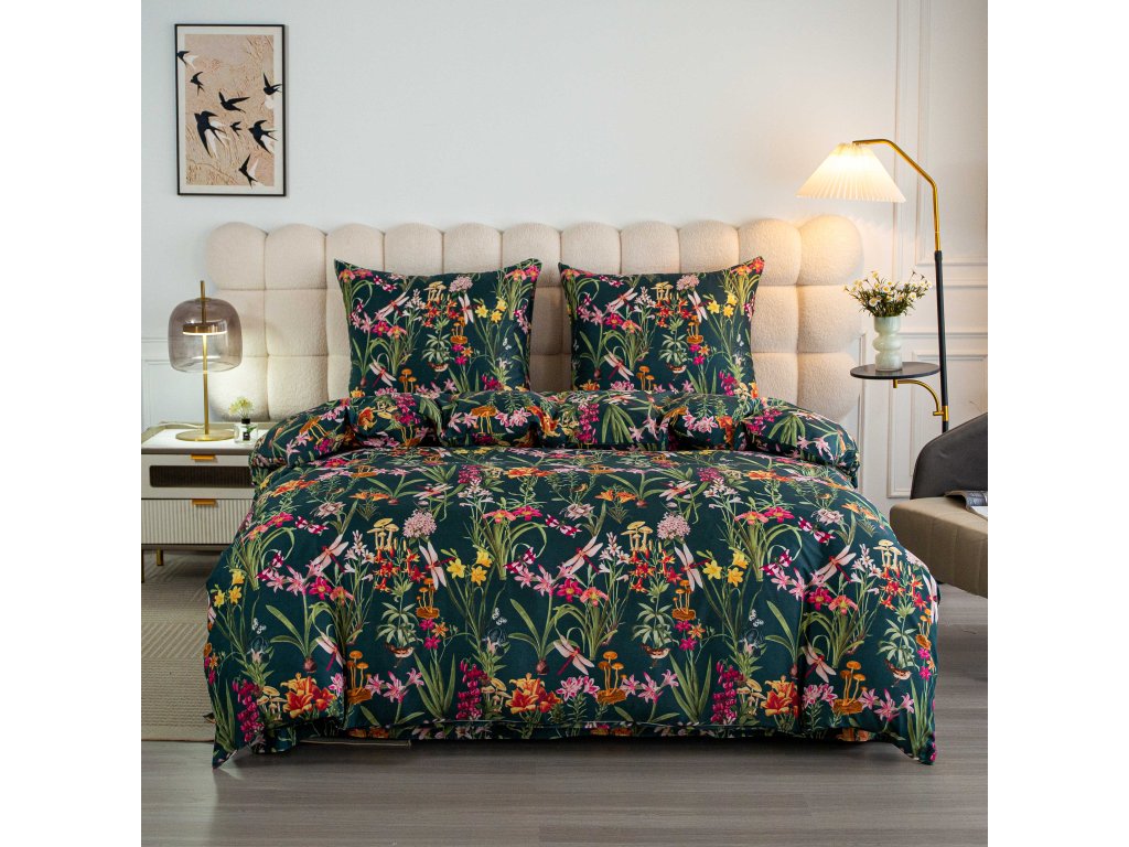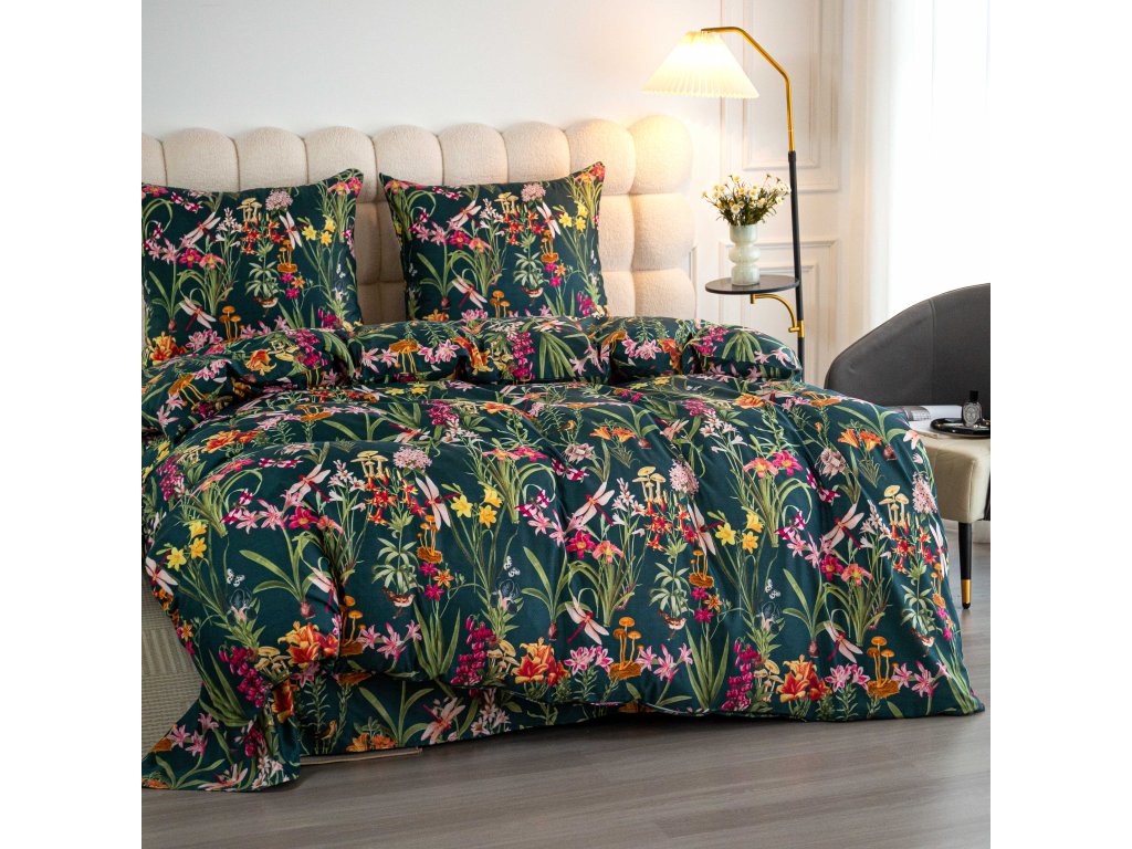 Lenjerie de pat din microfibra MYSTIC GARDEN verde inchis