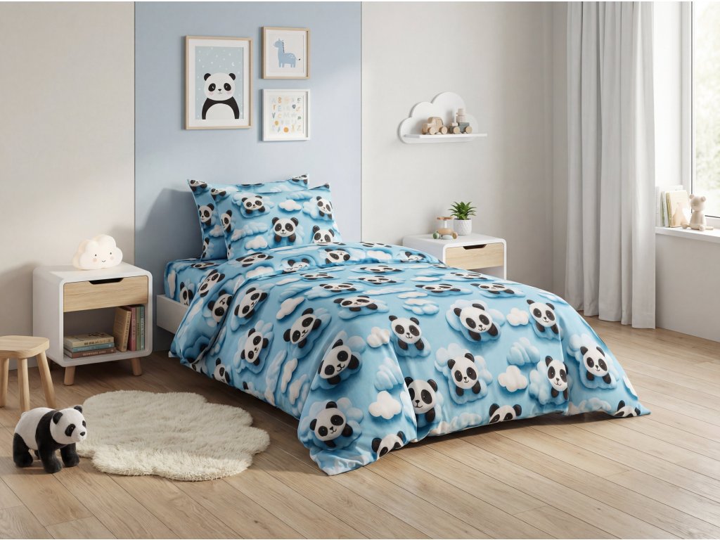 Lenjerie de pat din microfibra SKY PANDA albastru