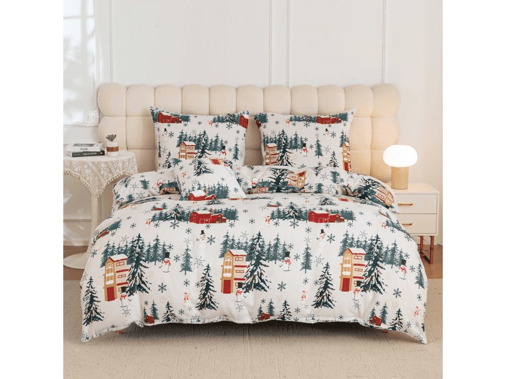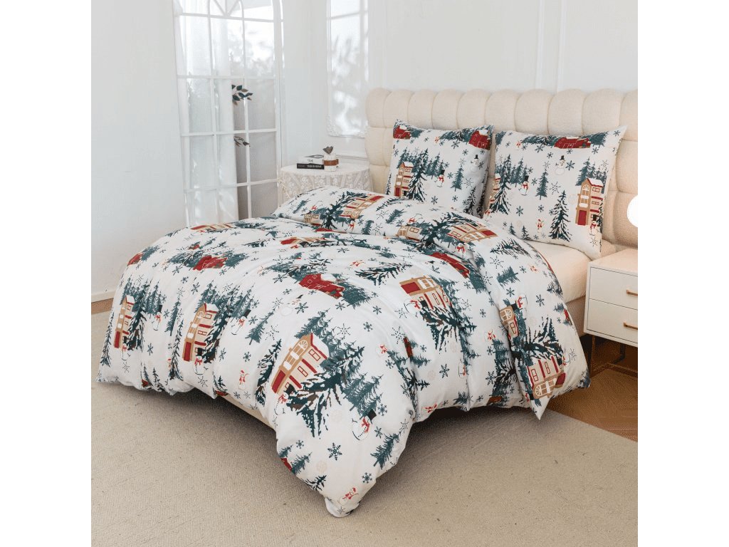 Lenjerie de pat din microfibra SNOWY HOUSES alb