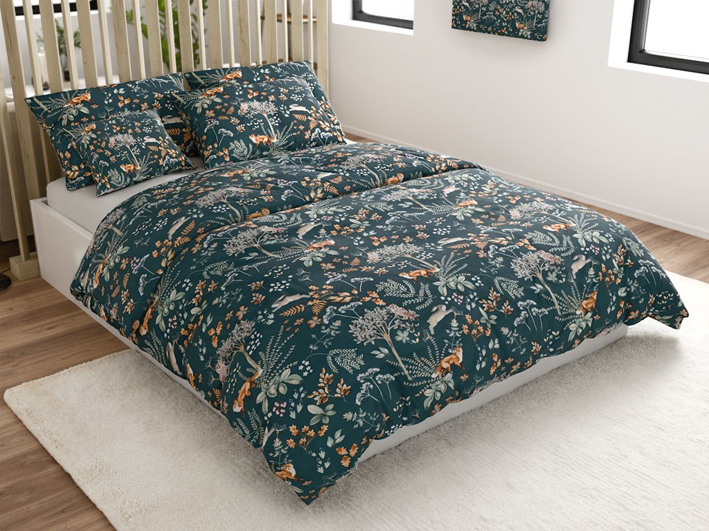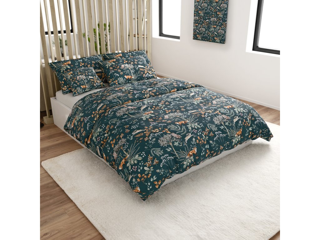 Lenjerie de pat din microfibra THE FOX AND THE HARE verde inchis