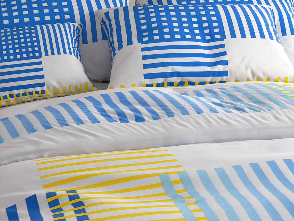 Lenjerie de pat din microsaten MIRVOLLI, alb-albastru