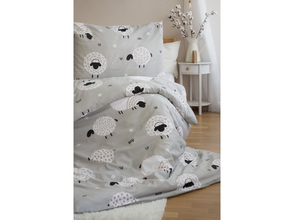 Lenjerie de pat din bumbac pentru 2 paturi SHEEPS, bej
