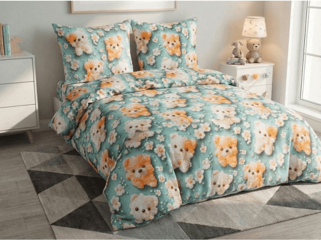Lenjerie de pat din microfibra pentru copii PUPPIFLORA colorata