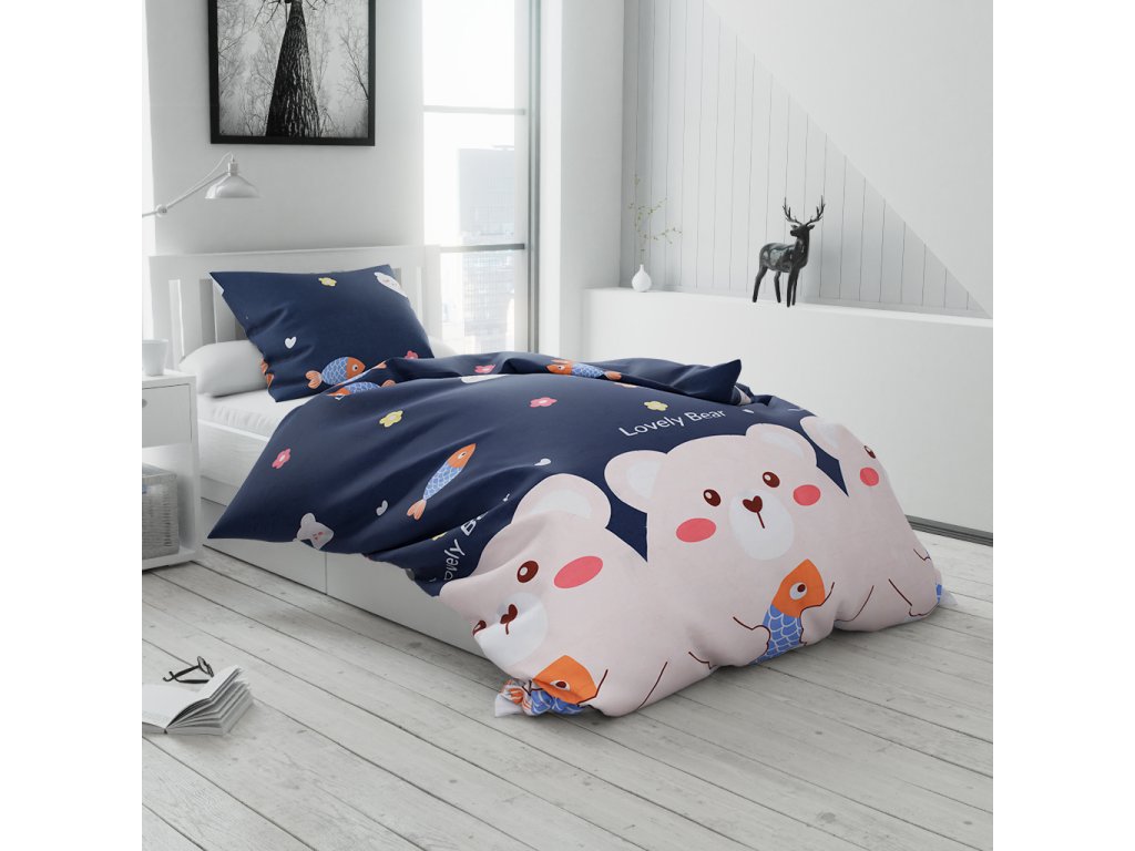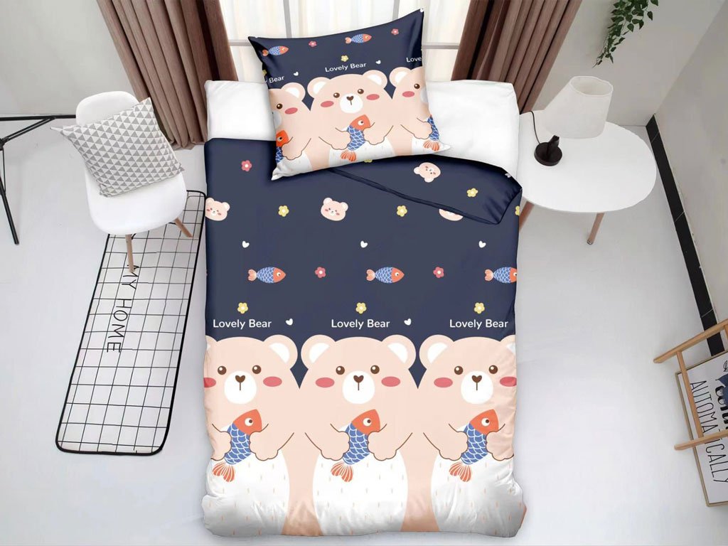 Lenjerie de pat pentru copii Culoare albastru inchis, LOVELY BEAR