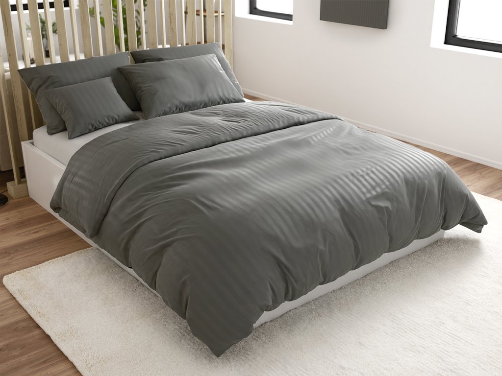 Lenjerie de pat din microfibra hoteliera JASMINE PURE gri - dunga 2 cm, buzunar hotelier