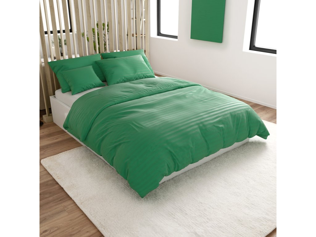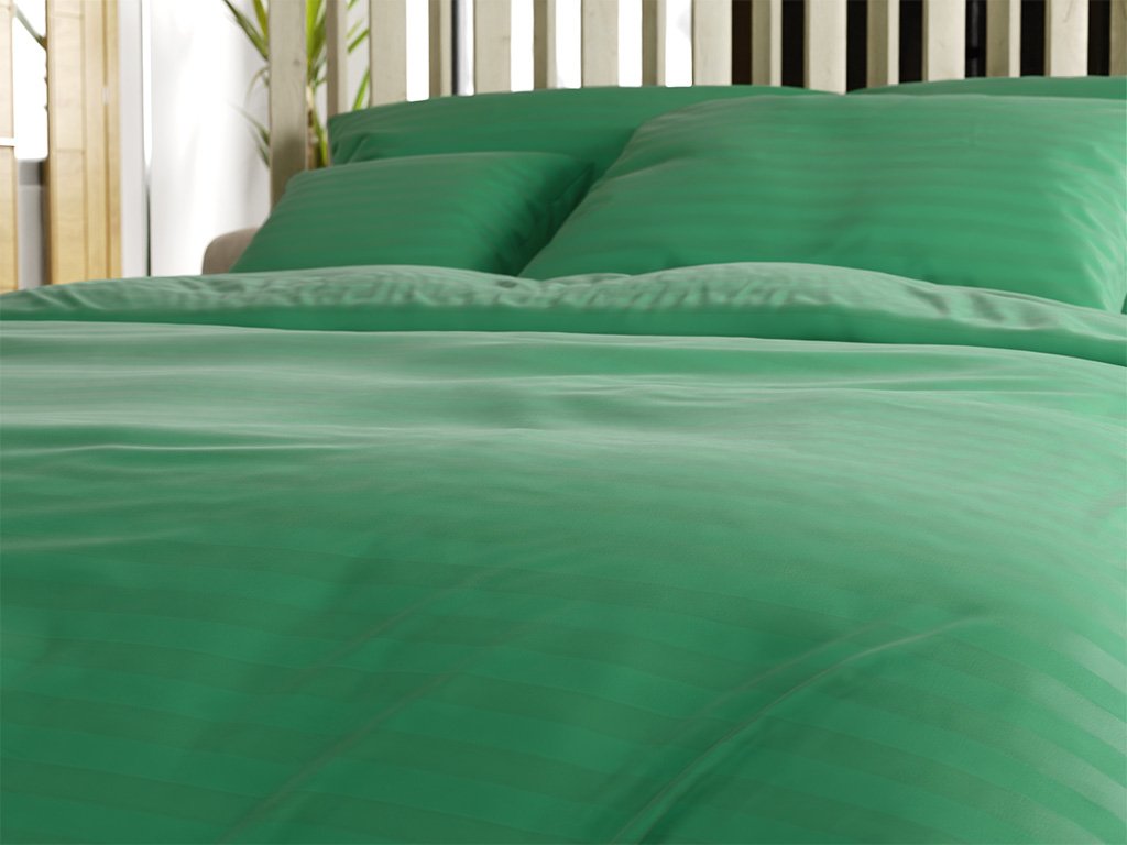 Lenjerie de pat din microfibra hoteliera JASMINE verde inchis - dunga 2 cm