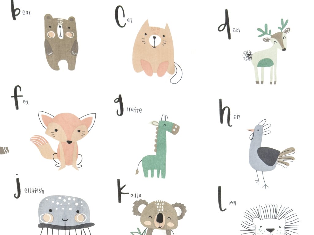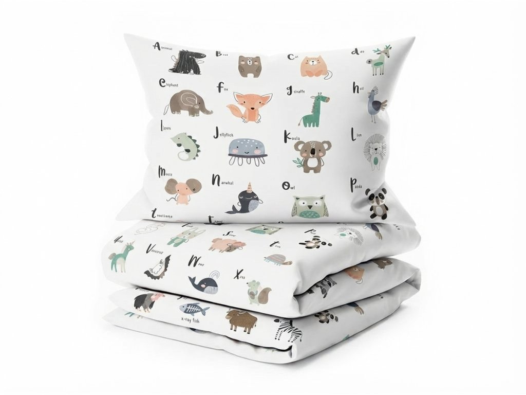Lenjerie de pat din bumbac pentru patut ANIMAL ALPHABET albă