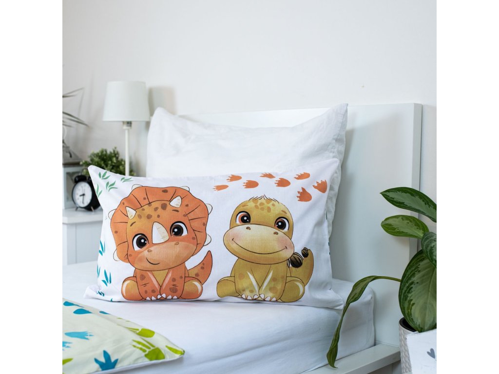 Lenjerie de pat din bumbac pentru patut DINO BABIES alba