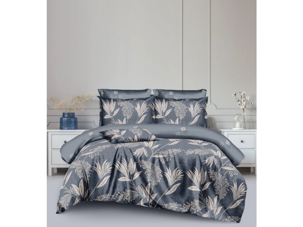 Lenjerie de pat dubla DUO SENSE INDIGOLE cu model + husa pentru perna 40x50 cm GRATUIT