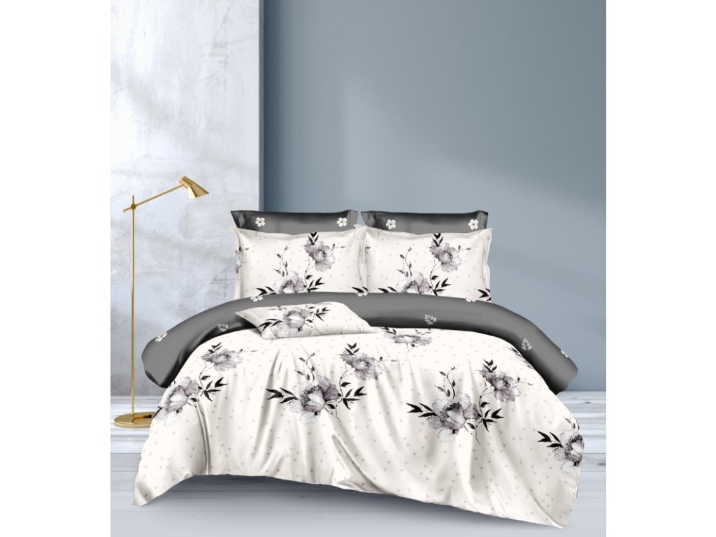 Lenjerie de pat dubla DUO SENSE MONARIA cu model + husa pentru perna 40x50 cm CADOU