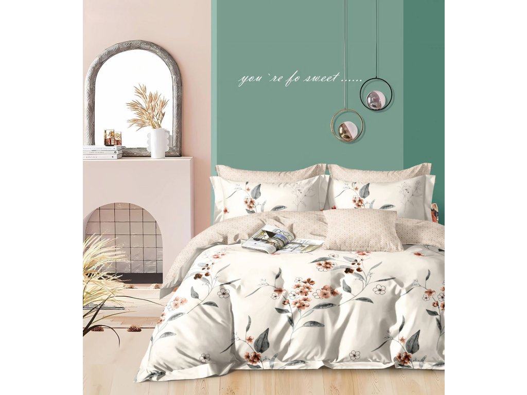 Lenjerie de pat reversibila DUO SENSE SOFIRA crem + husa de perna 40x50 cm GRATUIT