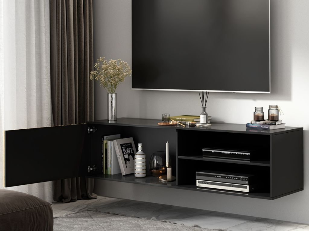 Comoda TV suspendata MEORATI 150x40 cm, negru/stejar artisan