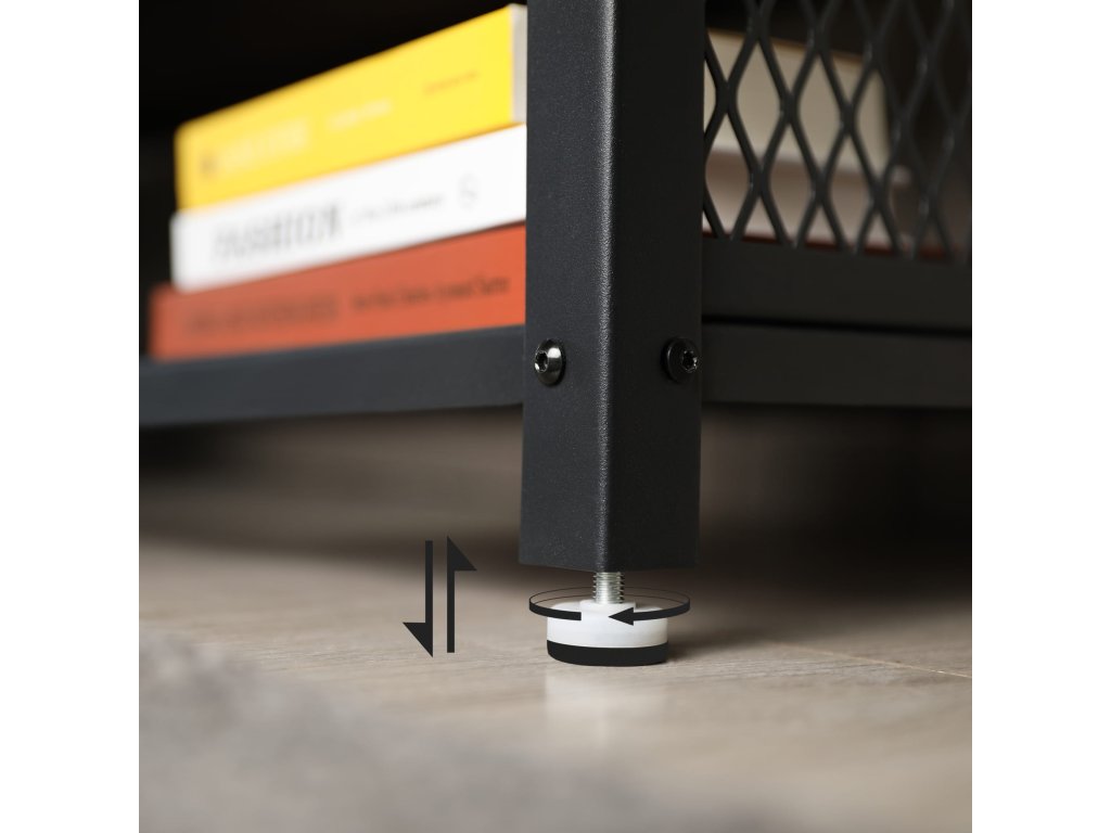Comodă TV stilată cu suprafață rustică și elemente industriale se potrivește perfect nu doar sub televizor, ci și ca spațiu de depozitare în living, hol sau birou. Combinația lemnului călduros și a metalului adaugă interiorului atât un aspect confortabil cât și modern. Rafturile sale spațioase sunt ideale pentru decoruri, cărți, electronice sau chiar flori. Un supliment grozav care îmbină practicul cu esteticul.