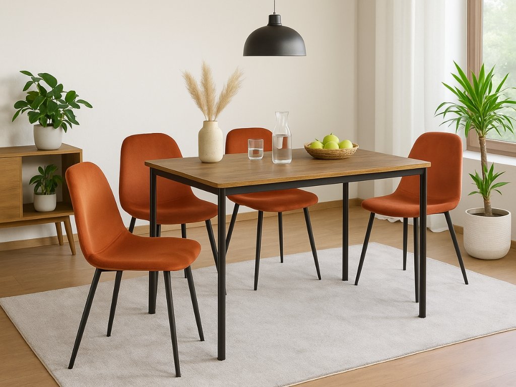 Masa de dining cu design simplu și modern se integrează ușor în orice interior. Datorită combinației dintre aspectul natural al stejarului și construcția metalică neagră, emană eleganță și atemporalitate. Oferă un loc confortabil pentru mesele de familie, întâlnirile de lucru și cafeaua de după-amiază cu prietenii. Se combină ușor cu diferite tipuri de scaune și accesorii, devenind astfel un centru practic al căminului dumneavoastră.