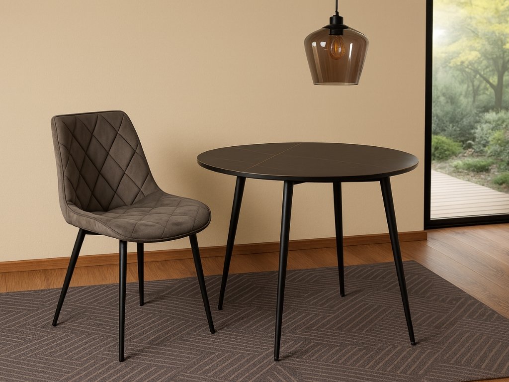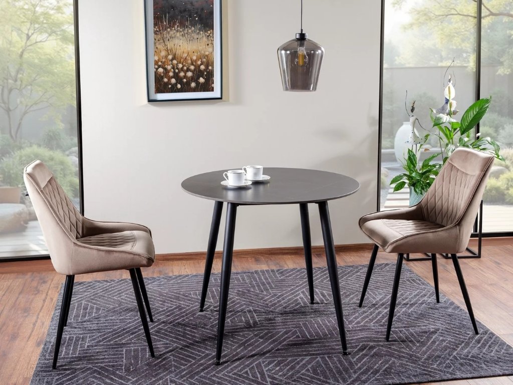 Masa rotunda de dining RION 90 cm cu blat ceramic, marmura neagra