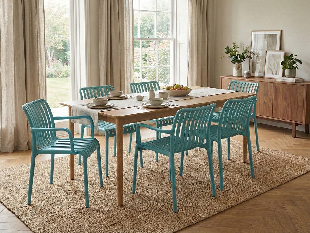 Scaun din plastic TREGO cu brate, albastru