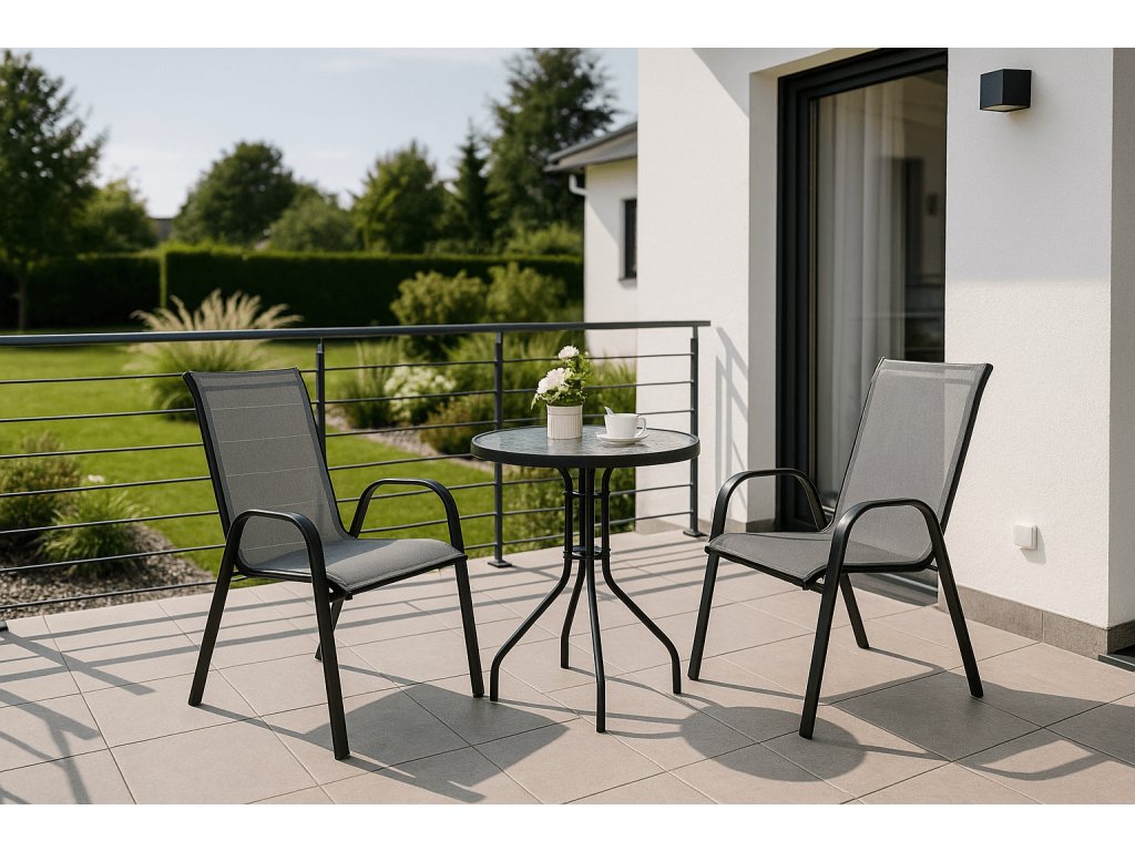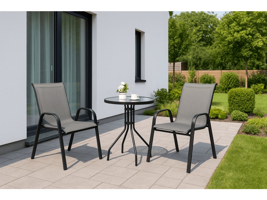 Set de gradina TAVERNO ISLAND - 2 scaune si masa rotunda, negru/gri