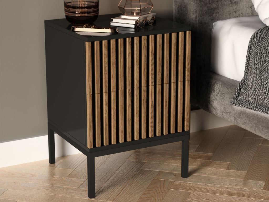 Noptiera MEORATI 40x40cm, neagra/dub artisan