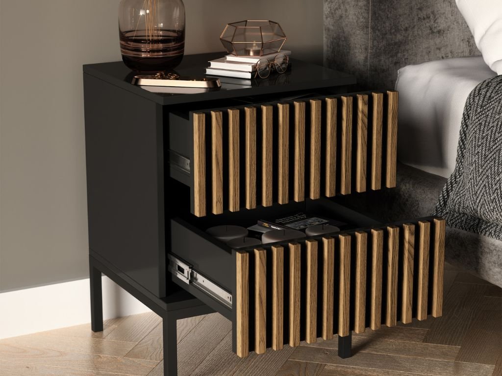 Această noptieră este nu doar un accesoriu stilat, dar și o soluție practică pentru utilizarea zilnică. Fie că servește ca noptieră lângă pat sau ca măsuță în camera de zi, cele două sertare spațioase vă ajută să mențineți ordinea și să aveți tot ce este necesar mereu la îndemână. Datorită designului compact și decorului din stejar artisan, se va integra ușor în orice interior, aducând o senzație de confort și eleganță. Alegerea ideală pentru oricine caută să îmbine funcționalitatea cu un stil atemporal.