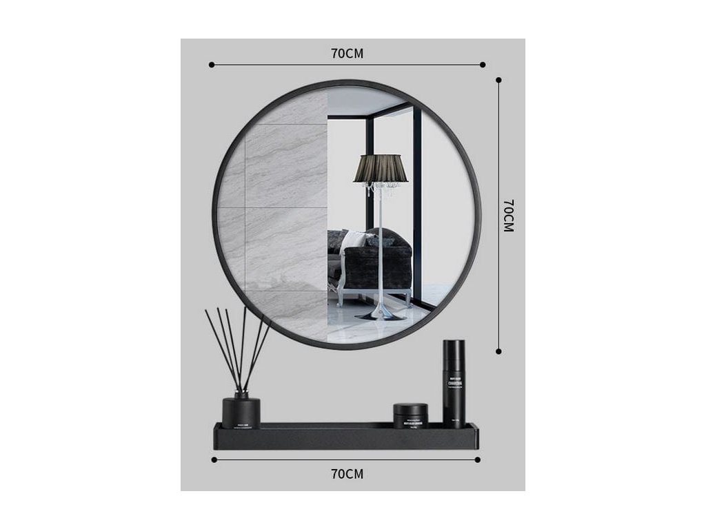 Oglinda rotunda cu raft Culoare negru, BREDO Ø70 cm