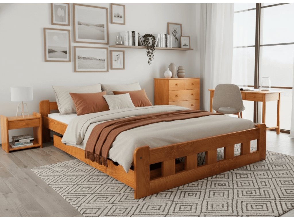 Paturile din lemn masiv de calitate sunt cel mai adesea fabricate din lemn de stejar, fag sau pin, acestea fiind materiale dovedite de proba timpului. Împreună cu o construcție robustă, patul va avea o durată de folosință lungă, fără semne de uzură. Paturile din lemn masiv sunt formate dintr-un cadru clasic și grătar. Un bonus binevenit este spațiul de depozitare inclus în design. Paturile din lemn masiv sunt rezistente, durabile și complet inofensive pentru sănătate.