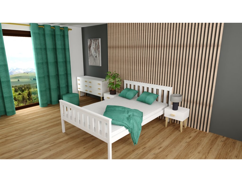 Patul KALEA în culoare albă este soluția ideală pentru cei care caută o piesă de mobilier simplă, dar în același timp stilată și funcțională. Datorită designului său curat, se potrivește perfect în interioare moderne și clasice, iar datorită dimensiunilor compacte își găsește locul și în camere mai mici. Construcția stabilă din lemn masiv asigură o durată lungă de viață și tăblia adaugă confort suplimentar – fie că este vorba despre citit, odihnă sau relaxare de seară.