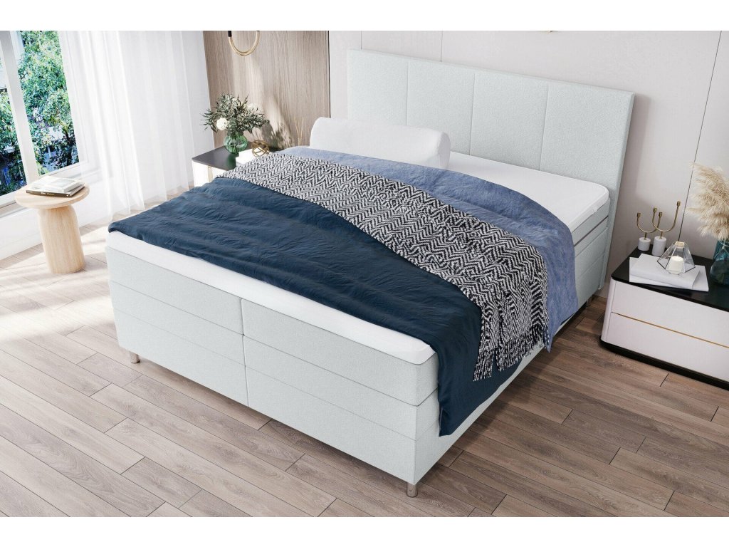 Pat boxspring tapițat CARINA 160x200 cm gri deschis NEVE 02