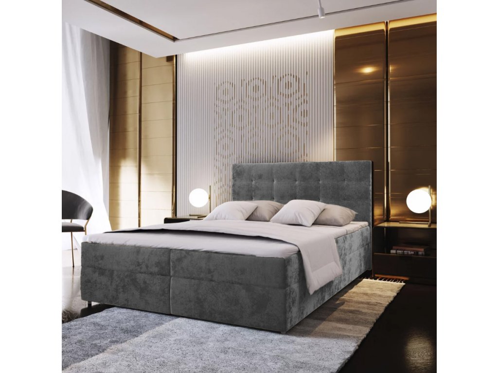 Pat tapitat boxspring GLORIEN VELVET 180x200 cm gri