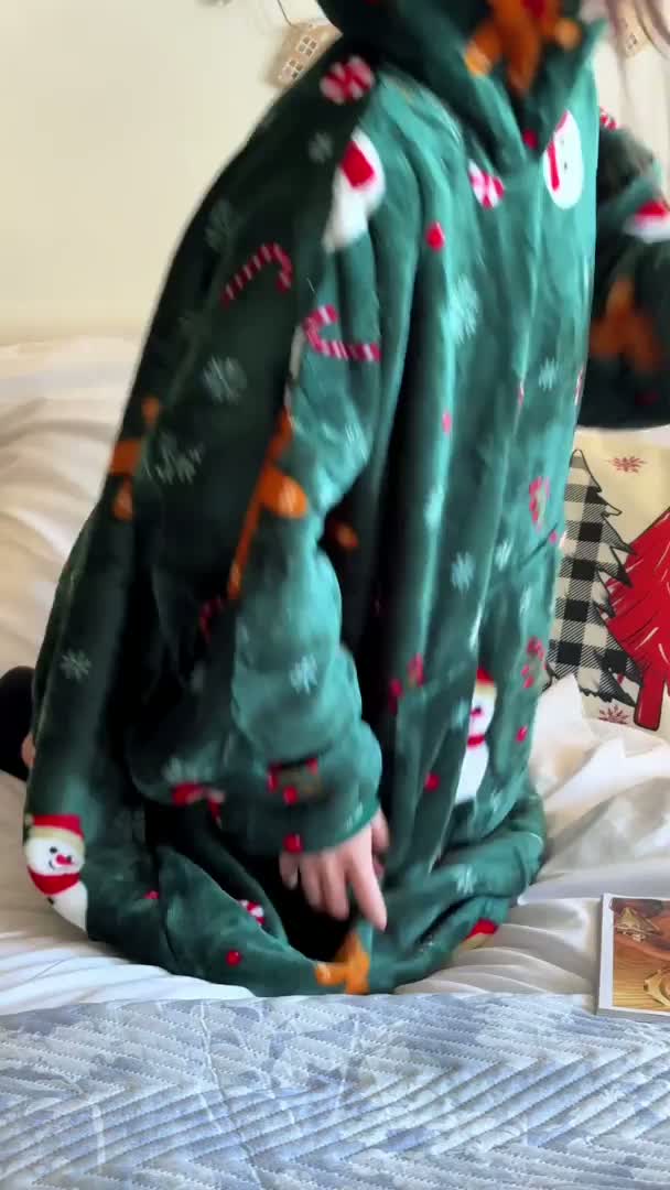 Patura cu maneci si gluga, imitatie de miel SNOWMAN AND GINGERBREAD, verde