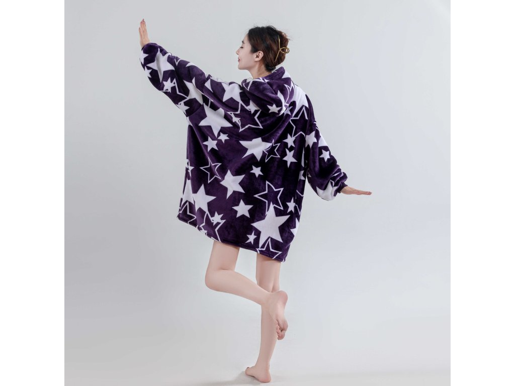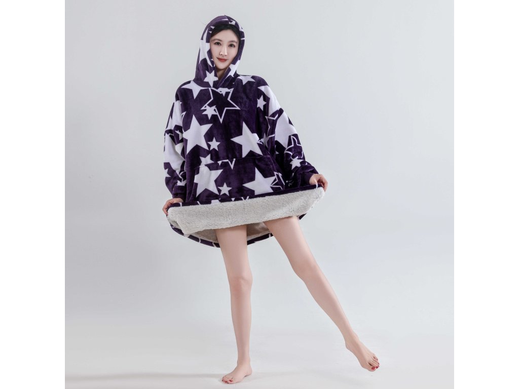 Patura cu maneci si gluga, imitatie de miel STARS violet