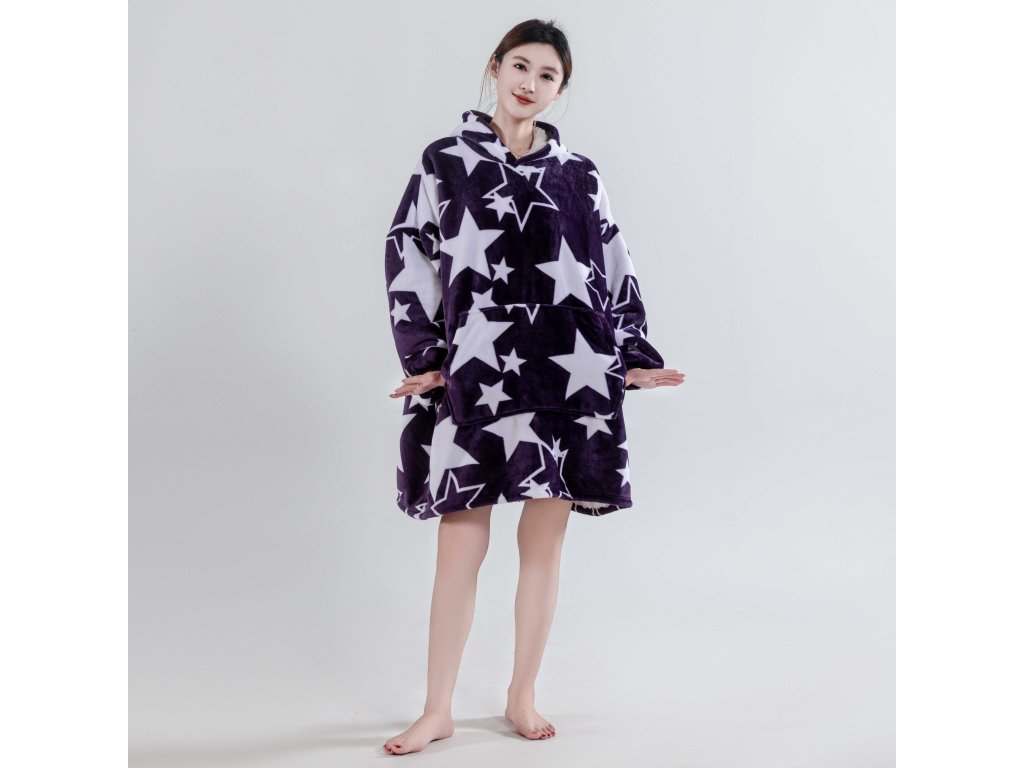 - Pătura tip hanorac este echipată cu glugă și buzunar mare