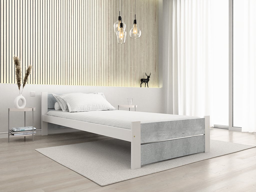 Pat de o persoana IKAROS DOUBLE 90 x 200 cm, beton/alba