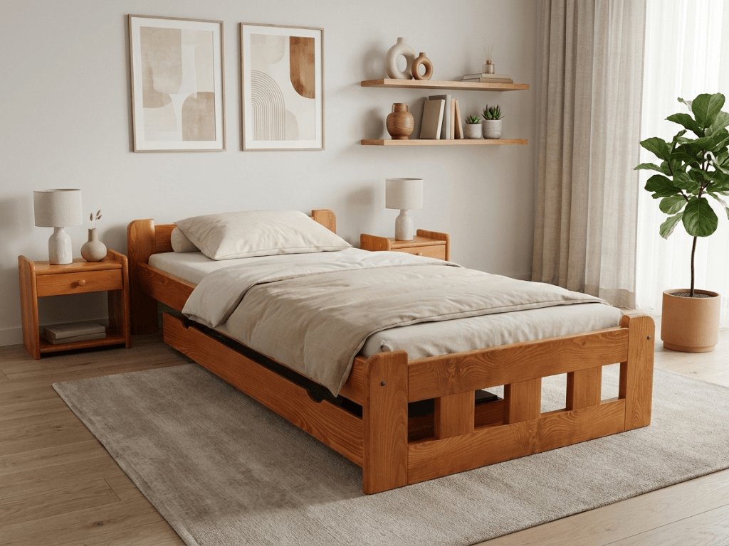Dimensiunea standard pentru un pat simplu este de 90 x 200 cm, fiind cea mai potrivită în camerele pentru copii și studenți. Lățimea clasică de 90 cm este confortabilă și convenabilă nu numai pentru copii, ci și pentru adulți. Prin urmare, este ideală pentru pensiuni și facilități de cazare sau apartamente mici.