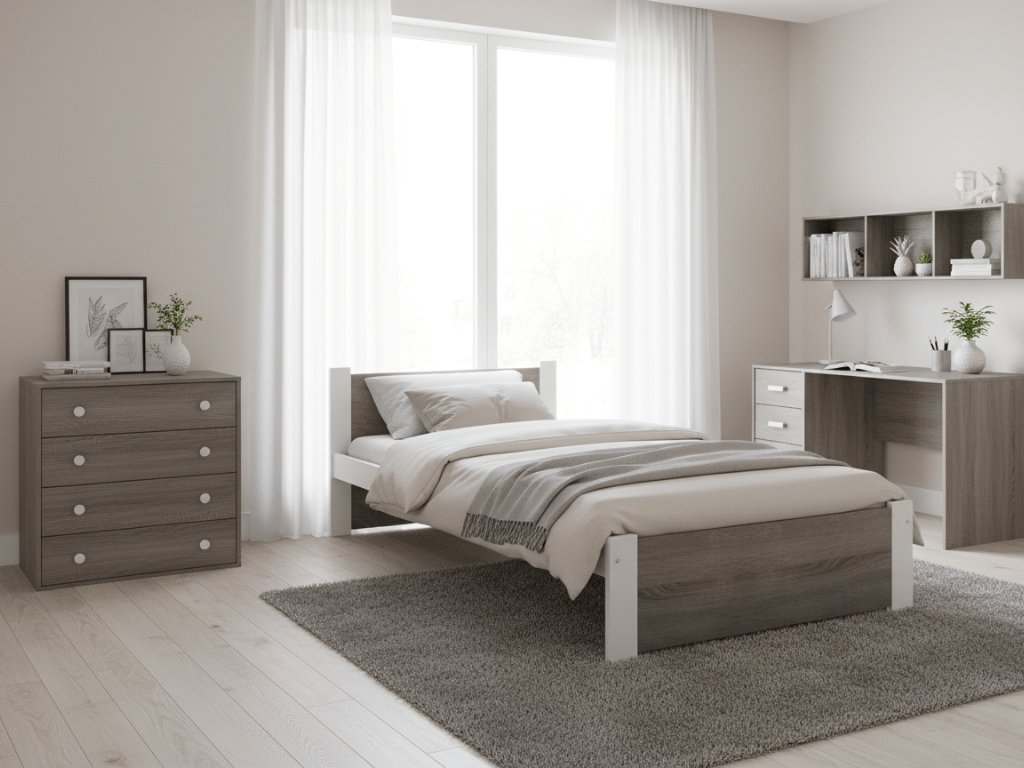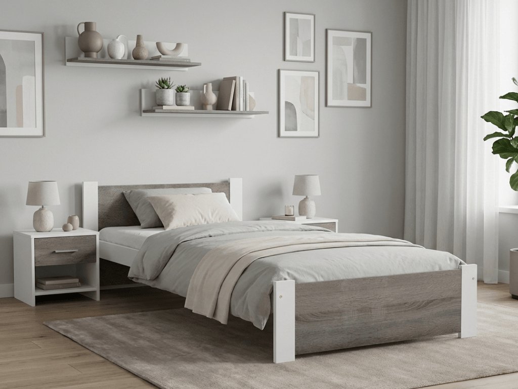 Pat de o persoana stejar alb/trufa, IKAROS 90 x 200 cm