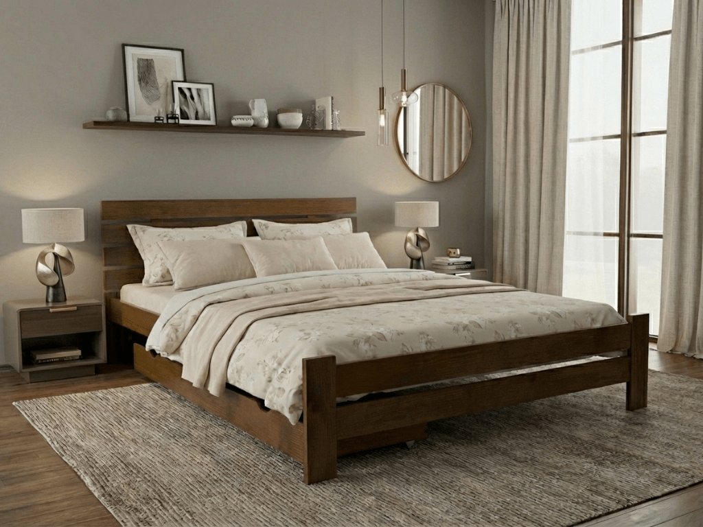 Construcția patului este foarte simplă, dar în același timp bine gândită. Patul clasic este format dintr-un cadru, cu două capete verticale "la cap și la picioare" și două laturi longitudinale. Numărul de laturi și șipci poate fi diferit, iar capetele pot fi, de asemenea, doar simple plăci. Așezăm grătarul pe cadrul asamblat astfel, sprijinindu-l pe părțile laterale și pe cele din față. Asamblarea cadrului se face acasă cu ajutorul știfturilor de lemn și șuruburilor cu blocare.