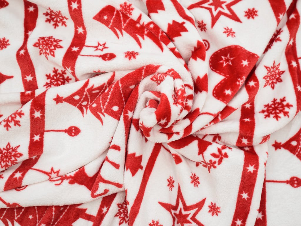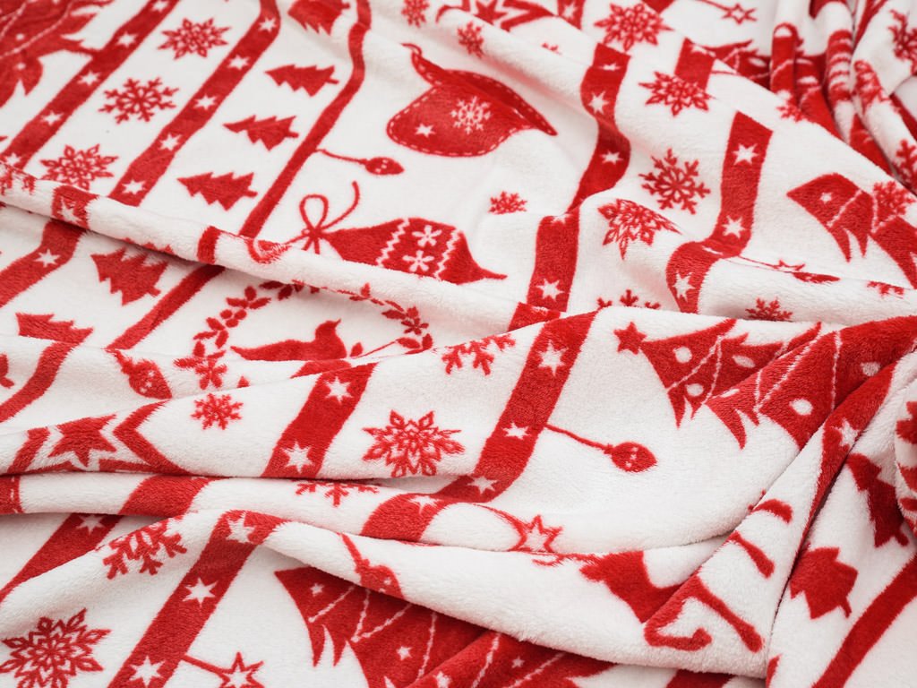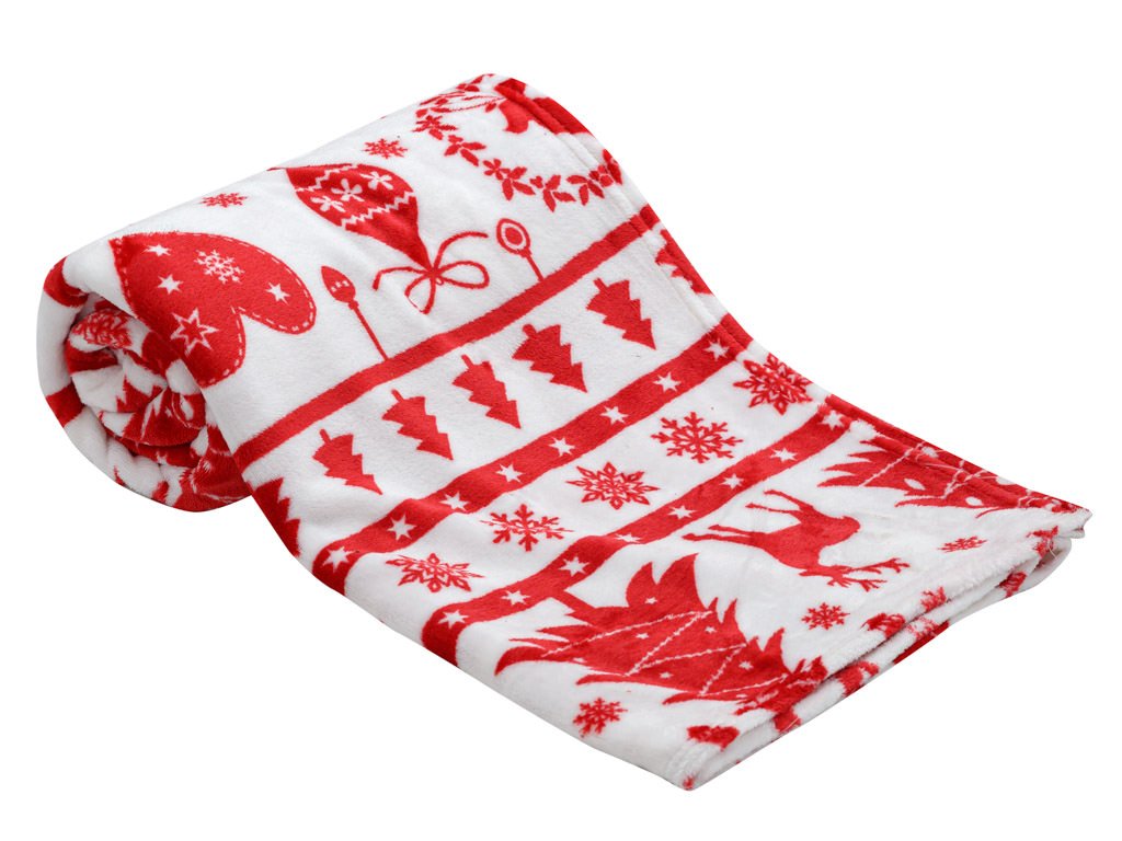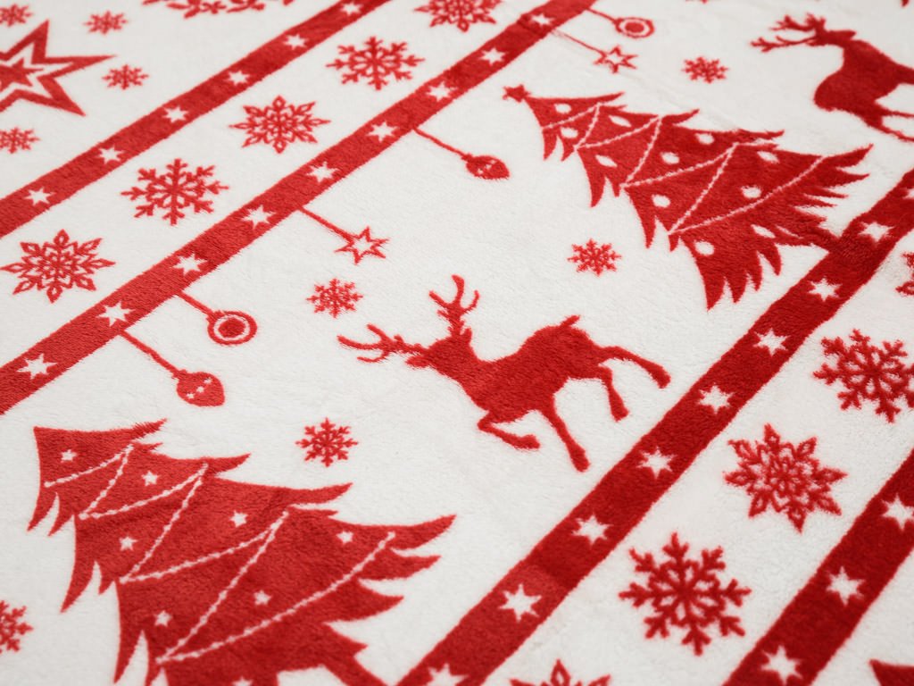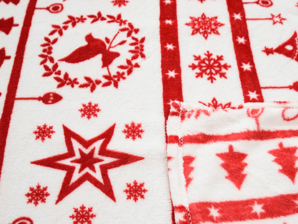 Patura cu microplus de Craciun rosu si alb, 200x230 cm