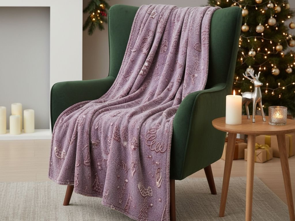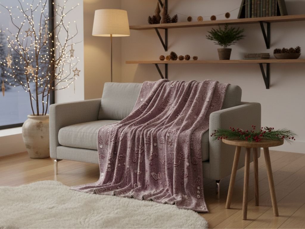 Patura din microplus Christmas PAINTY luminoasa, visinie