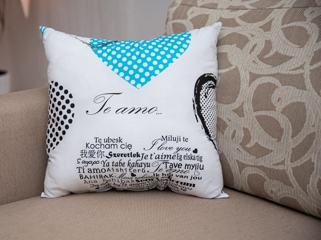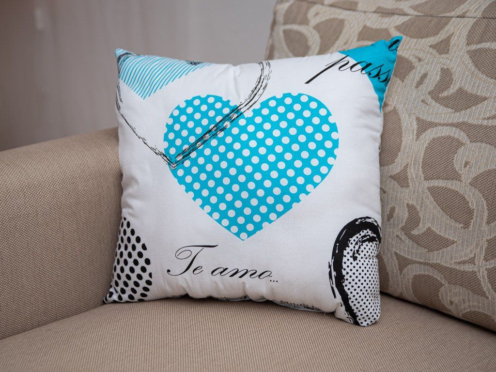 Perna decorativa cu Inimioare, turcoaz 40 x 40 cm