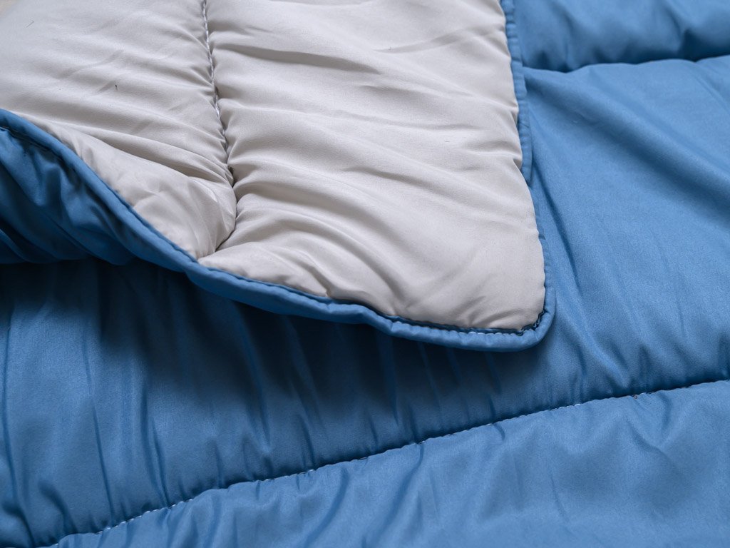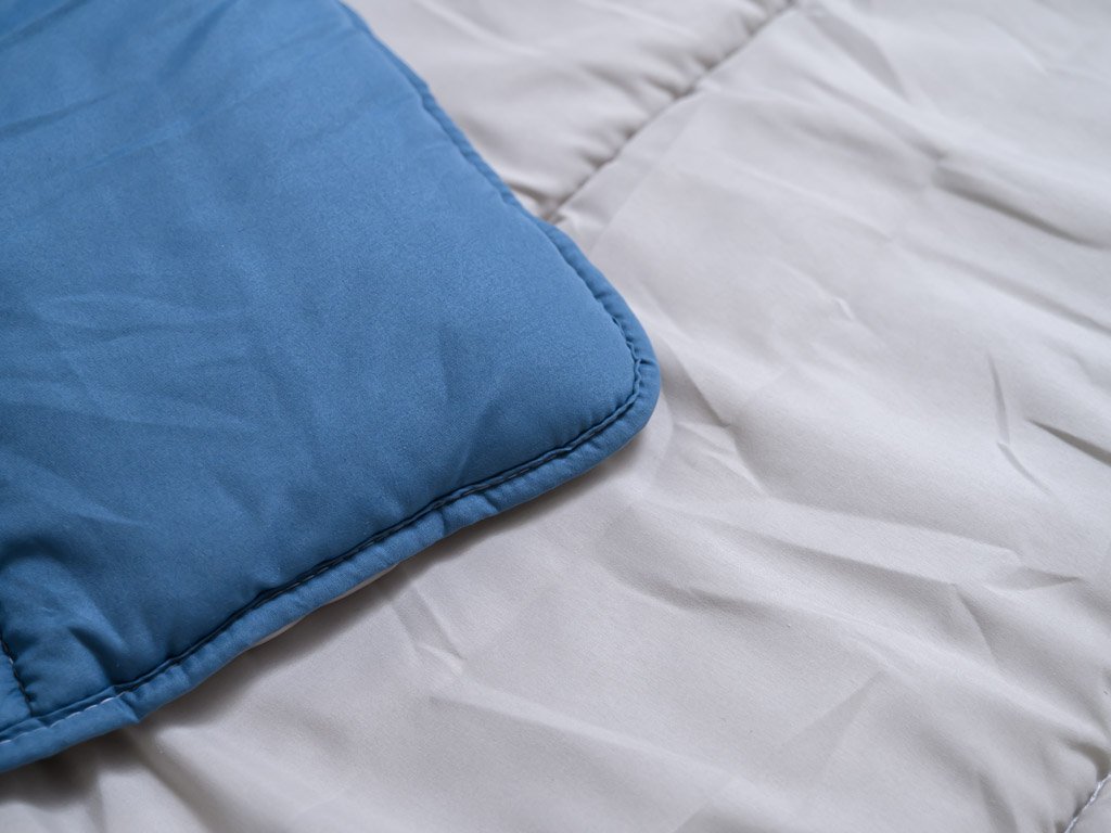 Pilota matlasata pentru toate anotimpurile 140x200 cm din fibra goala, albastra