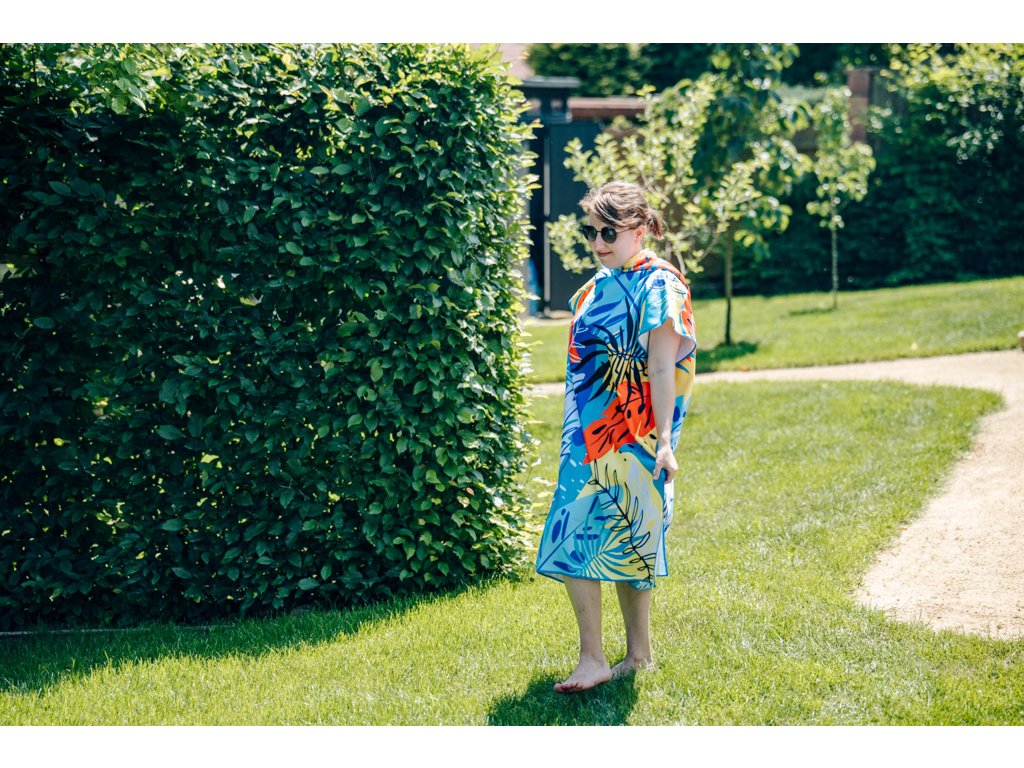 Intrați în aventura de vară cu poncho-ul care combină stilul, practicitatea și confortul. Fie că vă pregătiți pentru plajă, piscină sau o vacanță la mare, această piesă va deveni partenerul dumneavoastră de neînlocuit. Datorită microfibrei delicate și croielii inteligente cu glugă, vă va proteja de soare și vânt și, în același timp, va asigura o uscare rapidă. Momentele de vară merită să fie fără griji – și exact așa le va crea acest poncho.