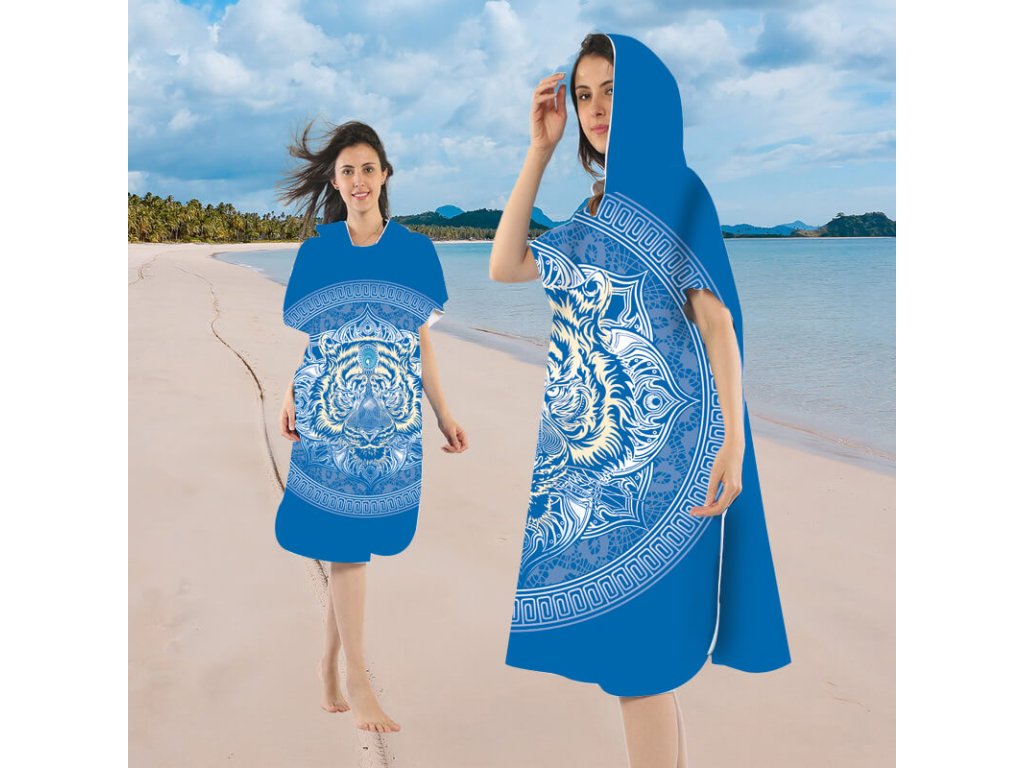Poncho prosop de plaja TIGER albastru 80x145 cm
