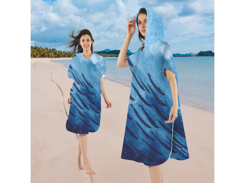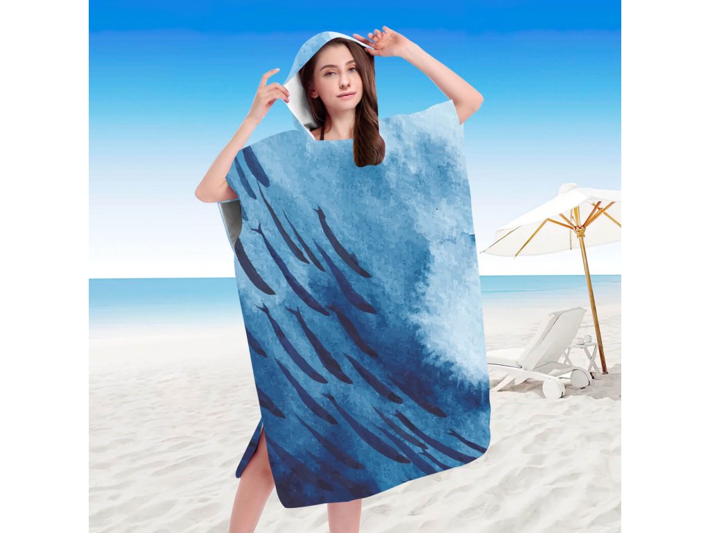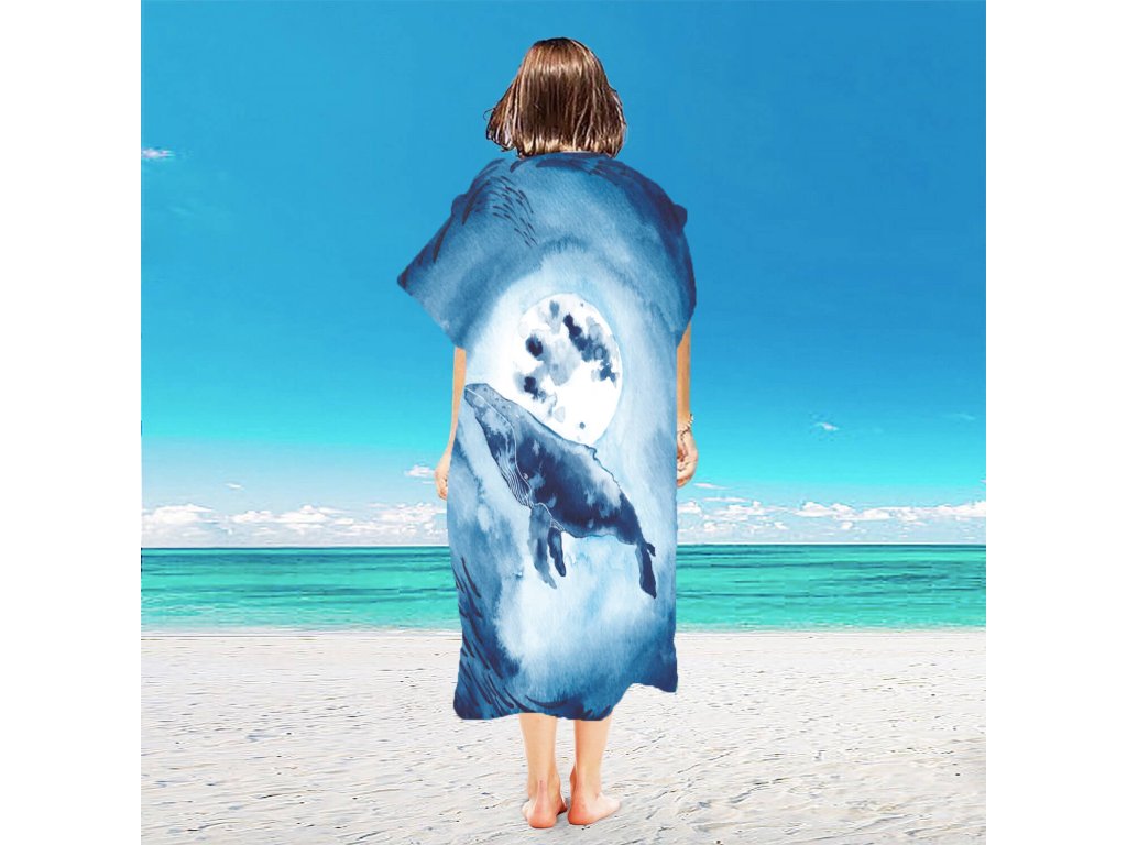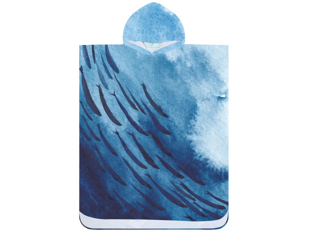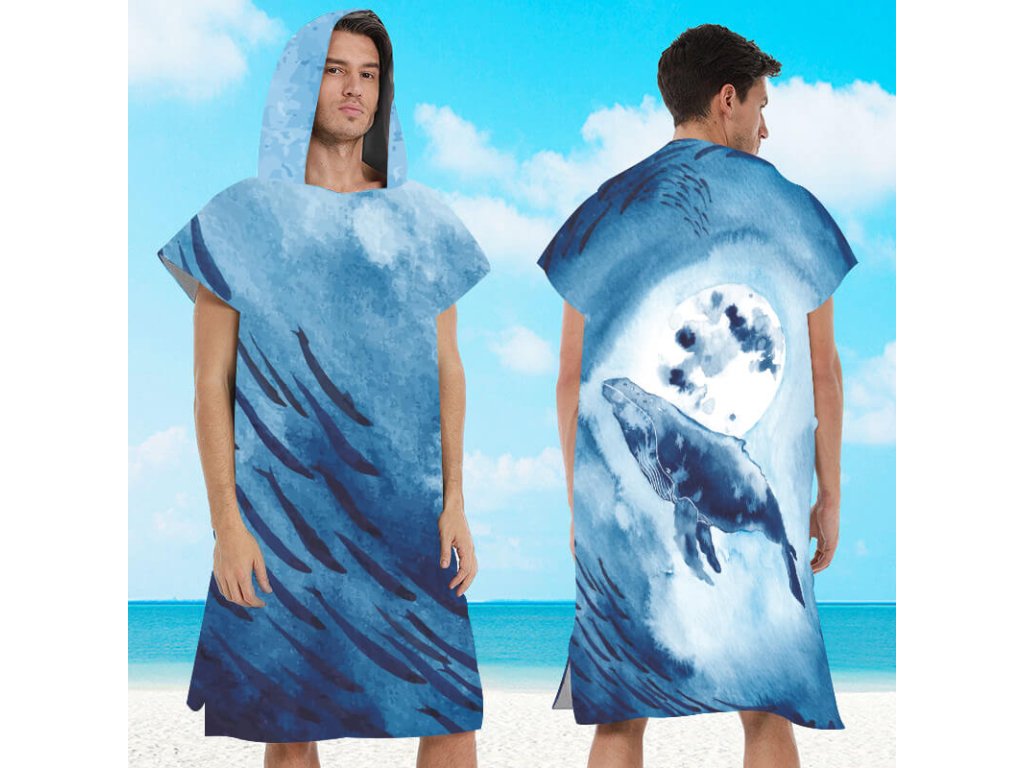 Poncho prosop de plaja WHALES albastru 80x145 cm